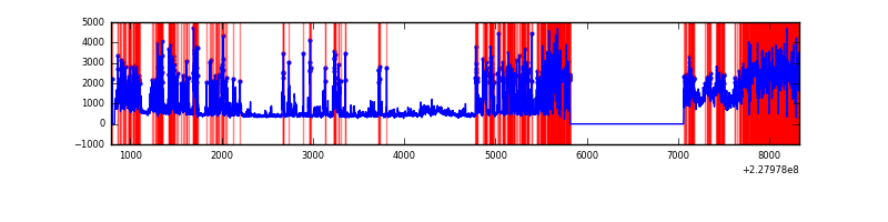 Red curve is a Poisson curve with rate = median count rate of data. |