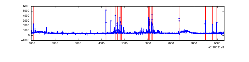 Red curve is a Poisson curve with rate = median count rate of data. |