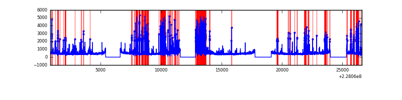 Red curve is a Poisson curve with rate = median count rate of data. |