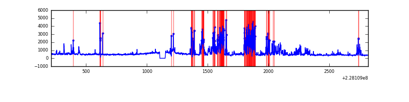 Red curve is a Poisson curve with rate = median count rate of data. |