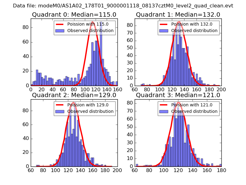 Red curve is a Poisson curve with rate = median count rate of data. |