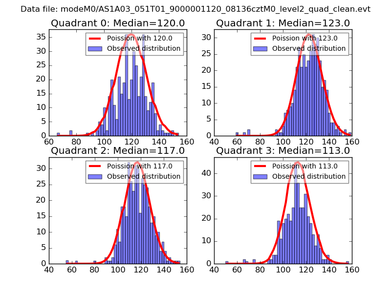 Red curve is a Poisson curve with rate = median count rate of data. |