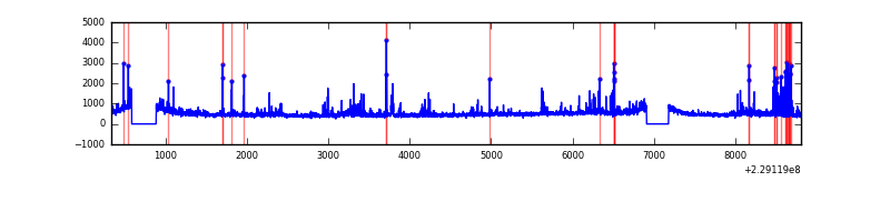 Red curve is a Poisson curve with rate = median count rate of data. |