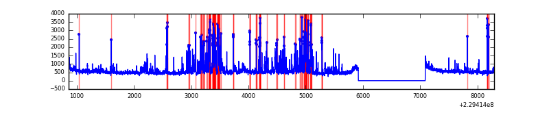 Red curve is a Poisson curve with rate = median count rate of data. |