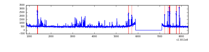 Red curve is a Poisson curve with rate = median count rate of data. |