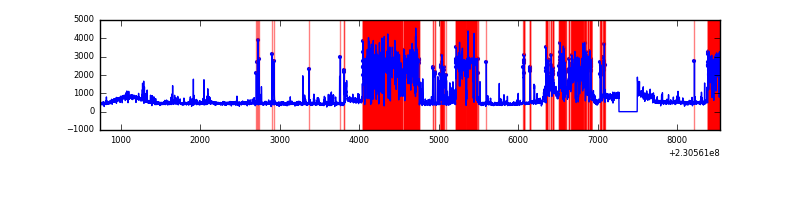 Red curve is a Poisson curve with rate = median count rate of data. |