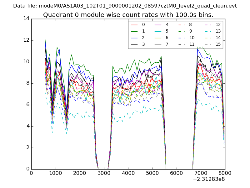 Module-wise count rates for Quadrant A