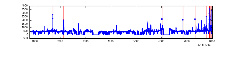 Red curve is a Poisson curve with rate = median count rate of data. |