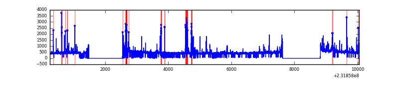 Red curve is a Poisson curve with rate = median count rate of data. |