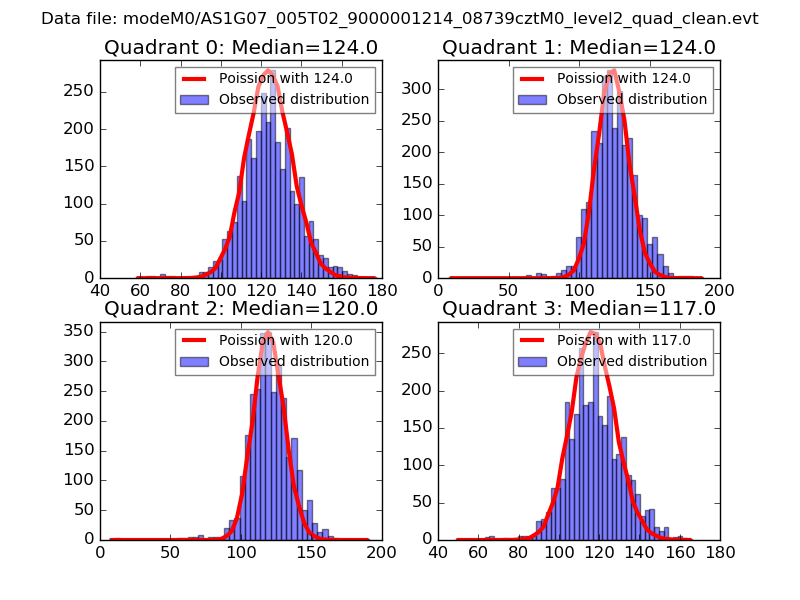 Red curve is a Poisson curve with rate = median count rate of data. |