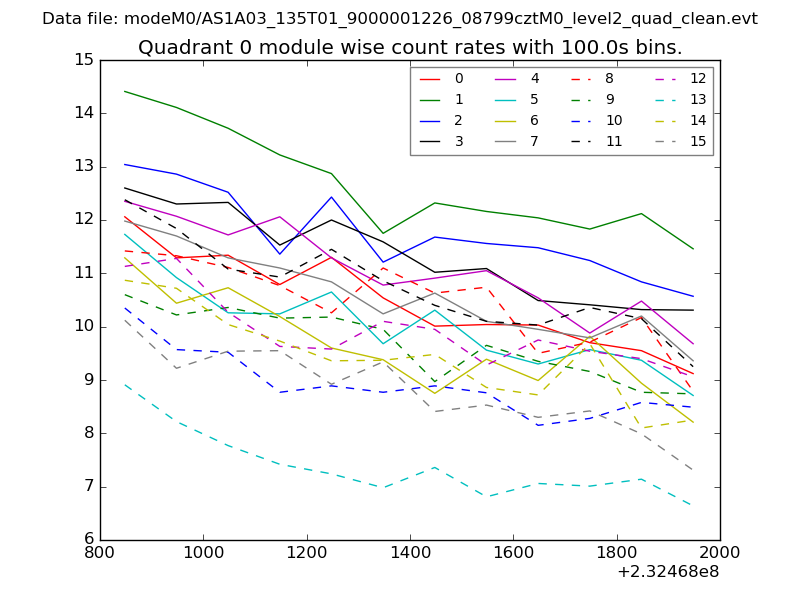 Module-wise count rates for Quadrant A