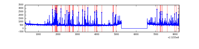 Red curve is a Poisson curve with rate = median count rate of data. |