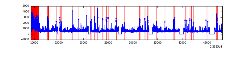 Red curve is a Poisson curve with rate = median count rate of data. |