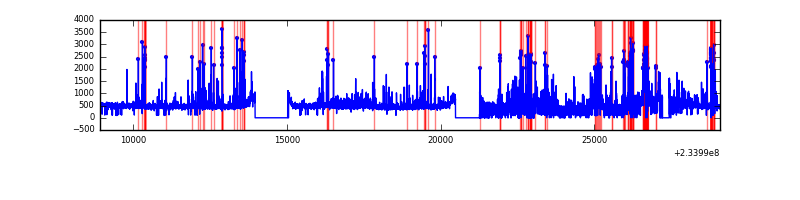 Red curve is a Poisson curve with rate = median count rate of data. |