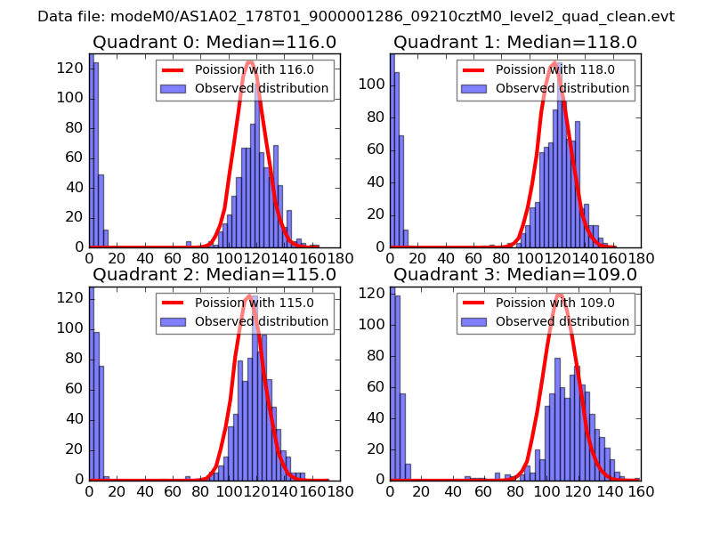 Red curve is a Poisson curve with rate = median count rate of data. |