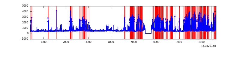 Red curve is a Poisson curve with rate = median count rate of data. |