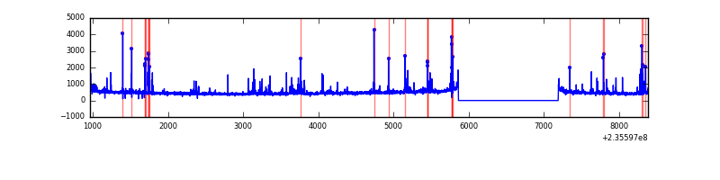 Red curve is a Poisson curve with rate = median count rate of data. |