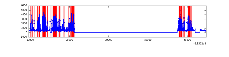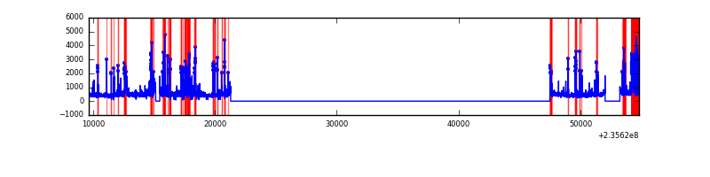 Red curve is a Poisson curve with rate = median count rate of data. |