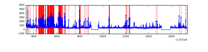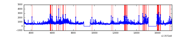 Red curve is a Poisson curve with rate = median count rate of data. |
