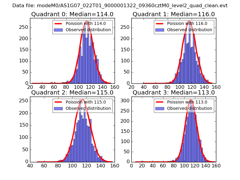 Red curve is a Poisson curve with rate = median count rate of data. |