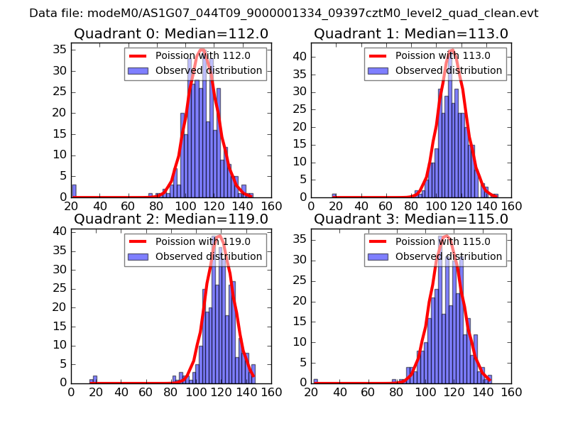 Red curve is a Poisson curve with rate = median count rate of data. |