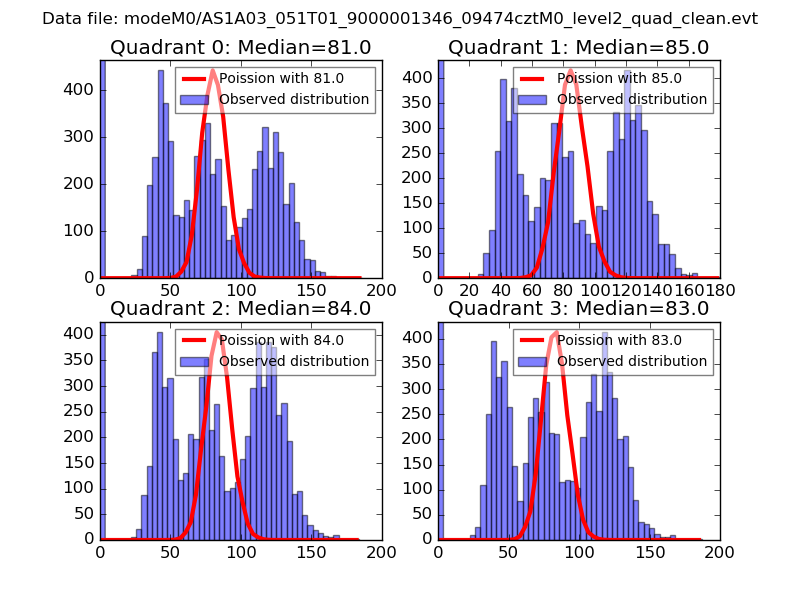 Red curve is a Poisson curve with rate = median count rate of data. |