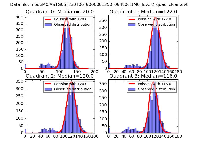 Red curve is a Poisson curve with rate = median count rate of data. |