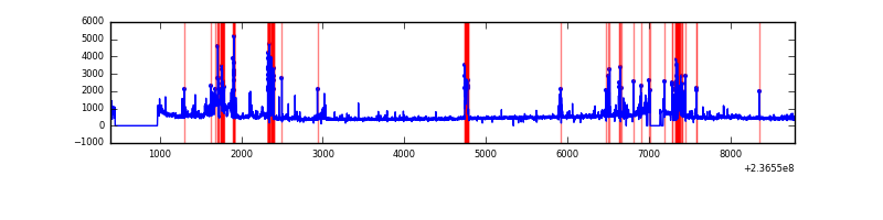 Red curve is a Poisson curve with rate = median count rate of data. |
