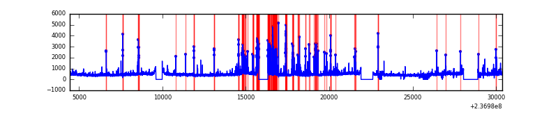 Red curve is a Poisson curve with rate = median count rate of data. |