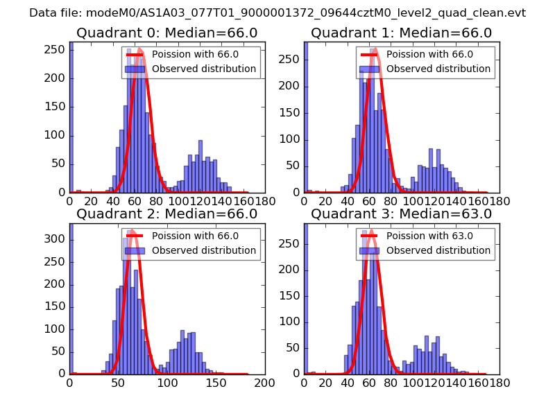 Red curve is a Poisson curve with rate = median count rate of data. |