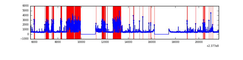 Red curve is a Poisson curve with rate = median count rate of data. |