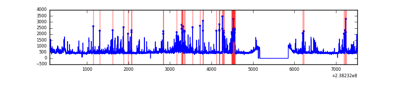 Red curve is a Poisson curve with rate = median count rate of data. |