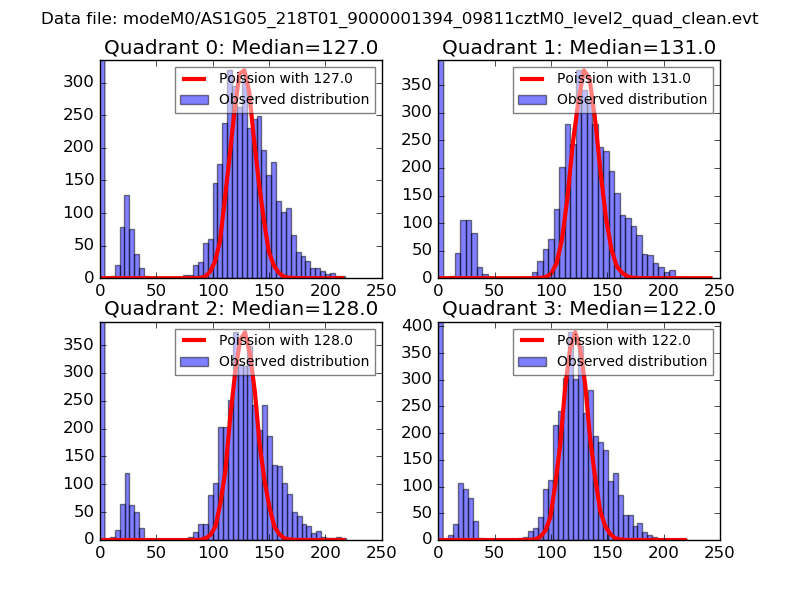 Red curve is a Poisson curve with rate = median count rate of data. |