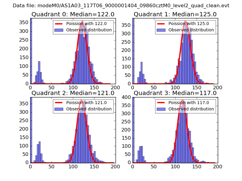 Red curve is a Poisson curve with rate = median count rate of data. |