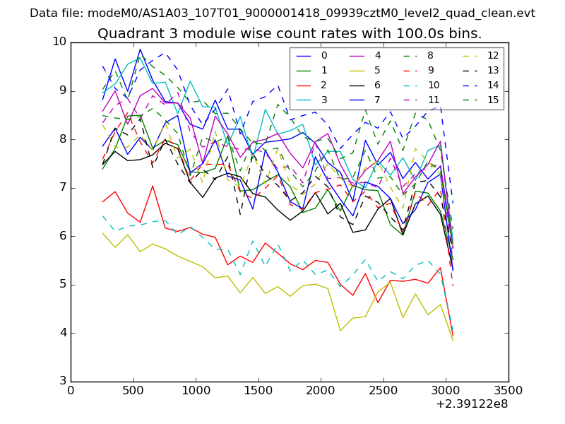 Module-wise count rates for Quadrant A