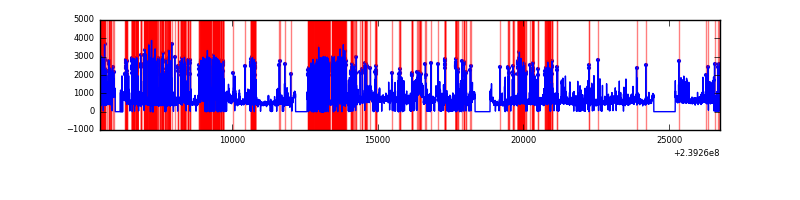 Red curve is a Poisson curve with rate = median count rate of data. |
