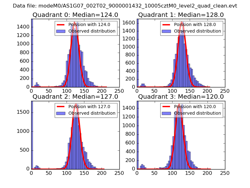 Red curve is a Poisson curve with rate = median count rate of data. |
