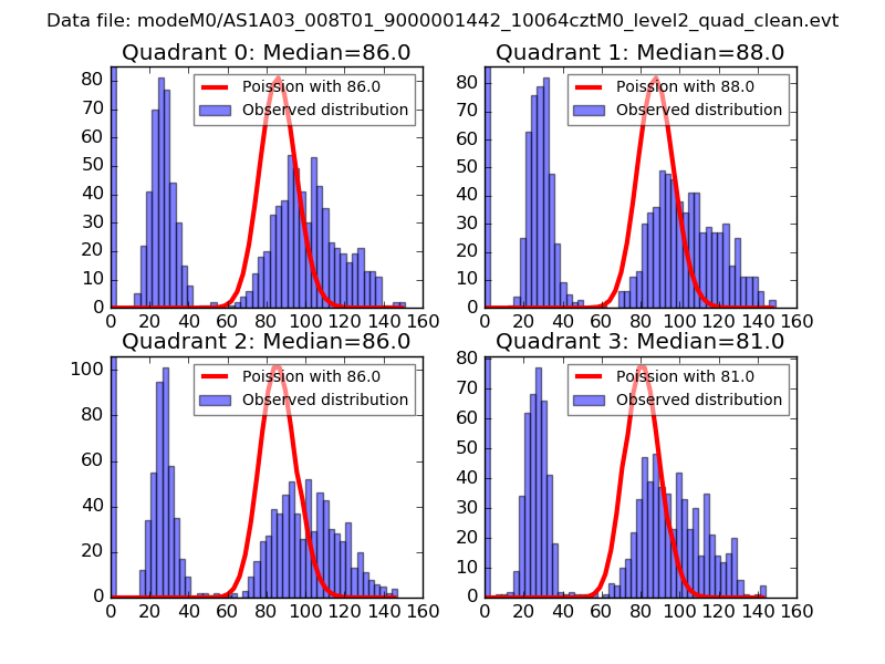 Red curve is a Poisson curve with rate = median count rate of data. |