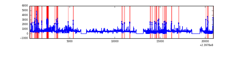 Red curve is a Poisson curve with rate = median count rate of data. |