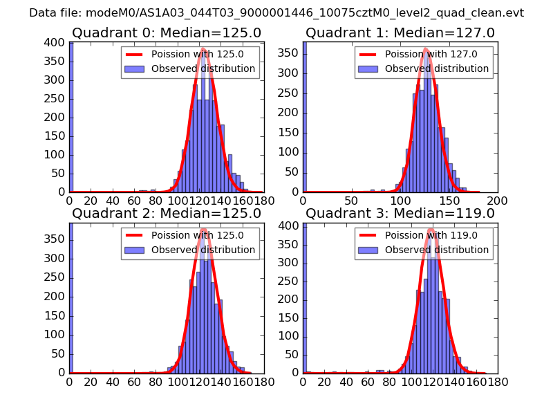 Red curve is a Poisson curve with rate = median count rate of data. |