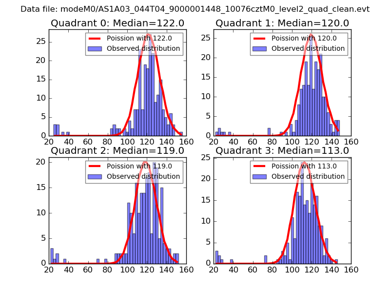 Red curve is a Poisson curve with rate = median count rate of data. |