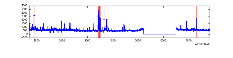 Red curve is a Poisson curve with rate = median count rate of data. |