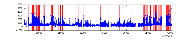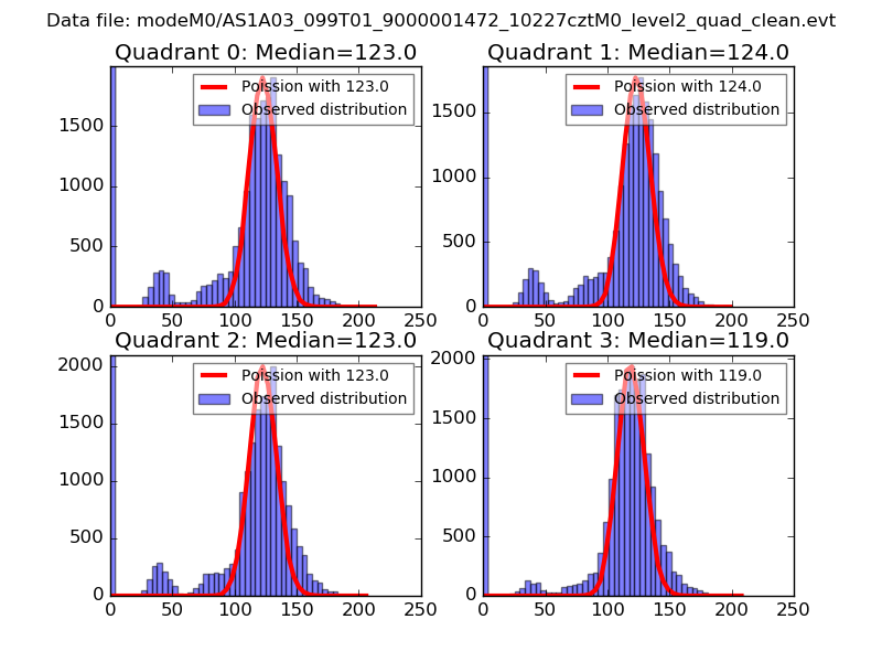 Red curve is a Poisson curve with rate = median count rate of data. |