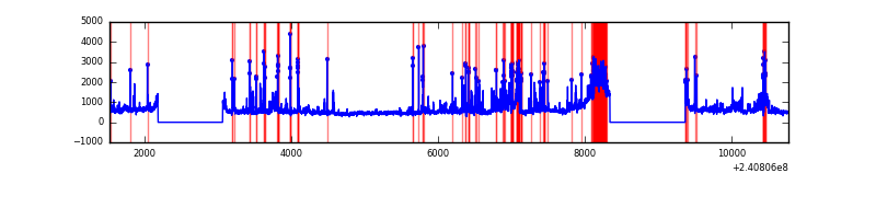 Red curve is a Poisson curve with rate = median count rate of data. |