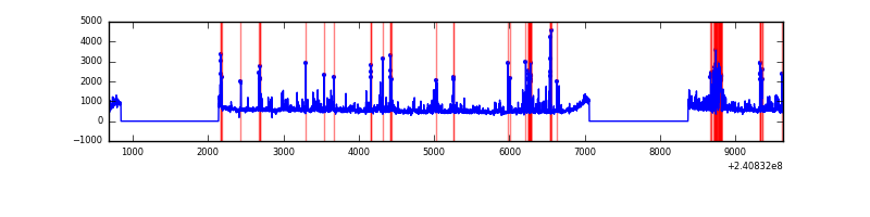 Red curve is a Poisson curve with rate = median count rate of data. |