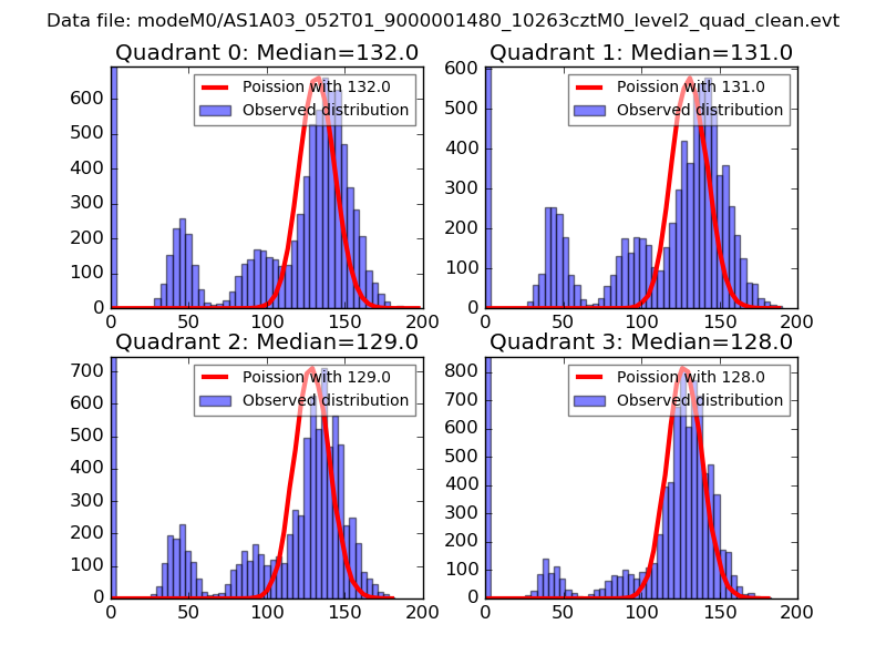 Red curve is a Poisson curve with rate = median count rate of data. |