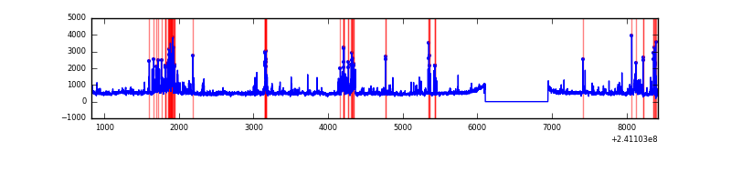Red curve is a Poisson curve with rate = median count rate of data. |