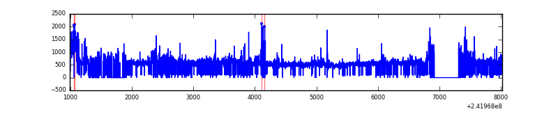 Red curve is a Poisson curve with rate = median count rate of data. |