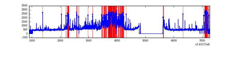 Red curve is a Poisson curve with rate = median count rate of data. |