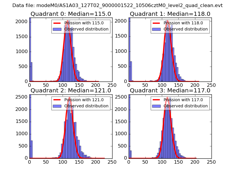 Red curve is a Poisson curve with rate = median count rate of data. |